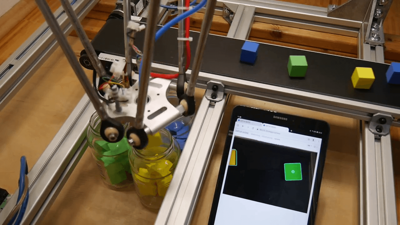 1 / 3Delta robot sorts cubes by colors