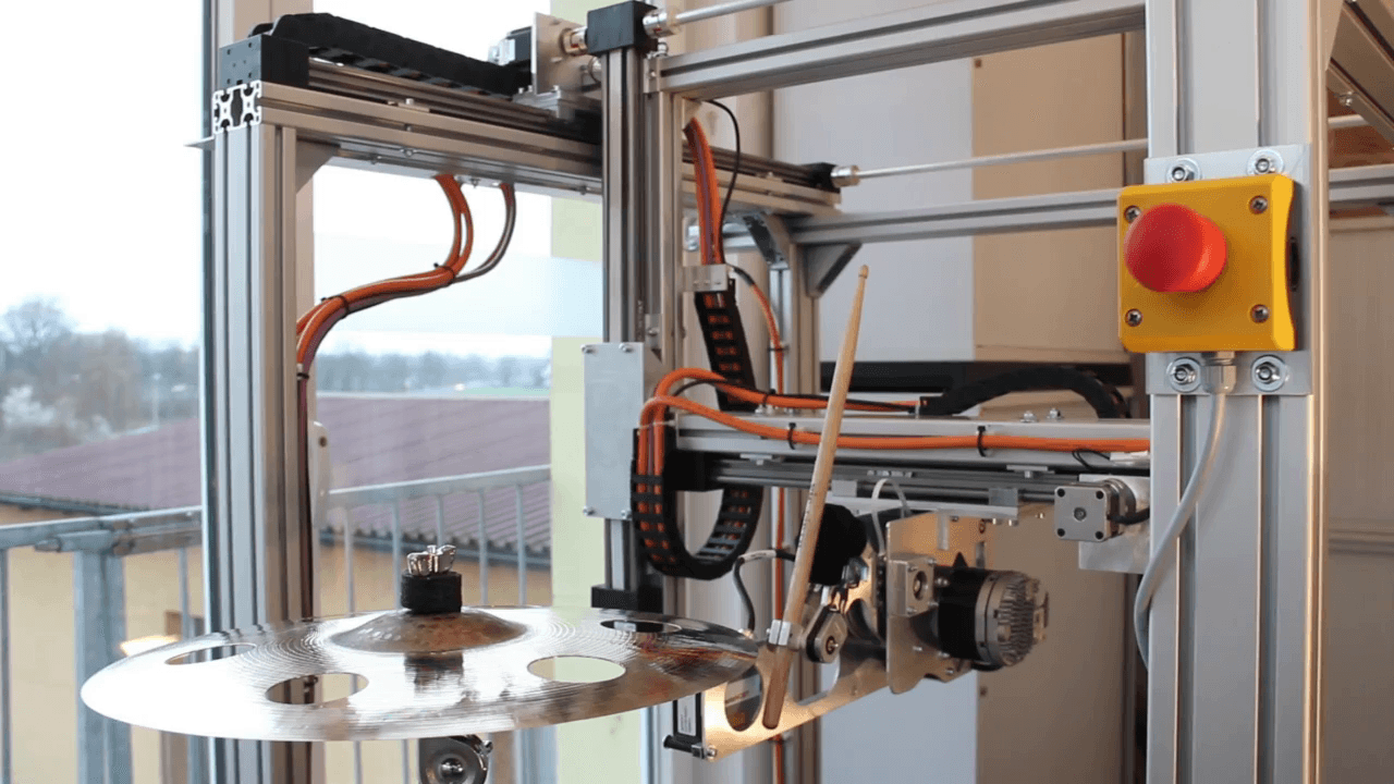 Also robots like to jam as the robot built by feinarbyte shows. The company developed a system for the automatic testing of drum cymbals. The important thing here is that the cymbal is played with uniform striking power at defined points. This is the only way to obtain comparable striking angles and thus comparable sound recordings.