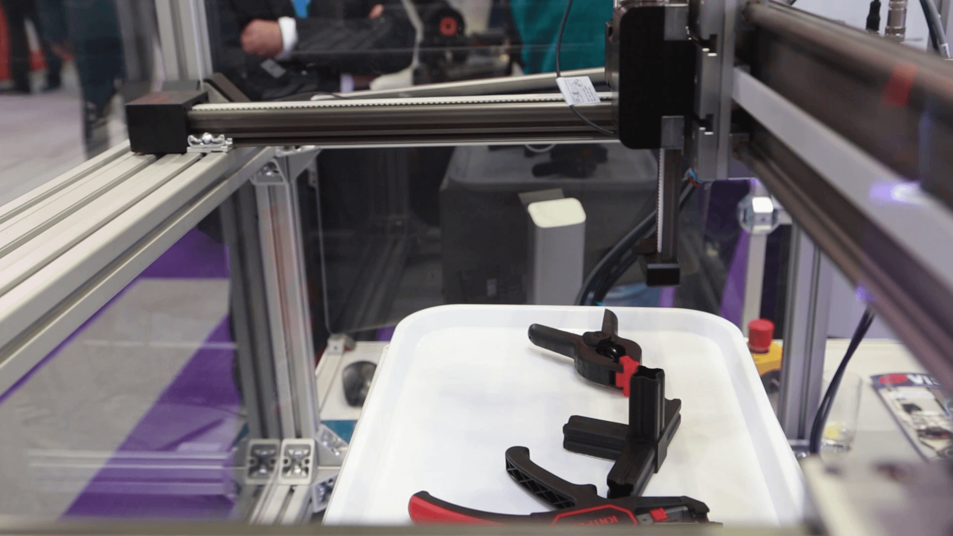 This application showcases a room portal system integrated with a camera that employs advanced AI algorithms for component recognition. The system effectively identifies and selects various objects, even without prior knowledge of their specific characteristics. In this demonstrator, recognized objects are precisely picked up and handled automatically, enabling seamless workflows and reducing manual intervention. The combination of AI-driven recognition and robotic automation enhances adaptability, making it ideal for dynamic environments requiring flexibility and precision.